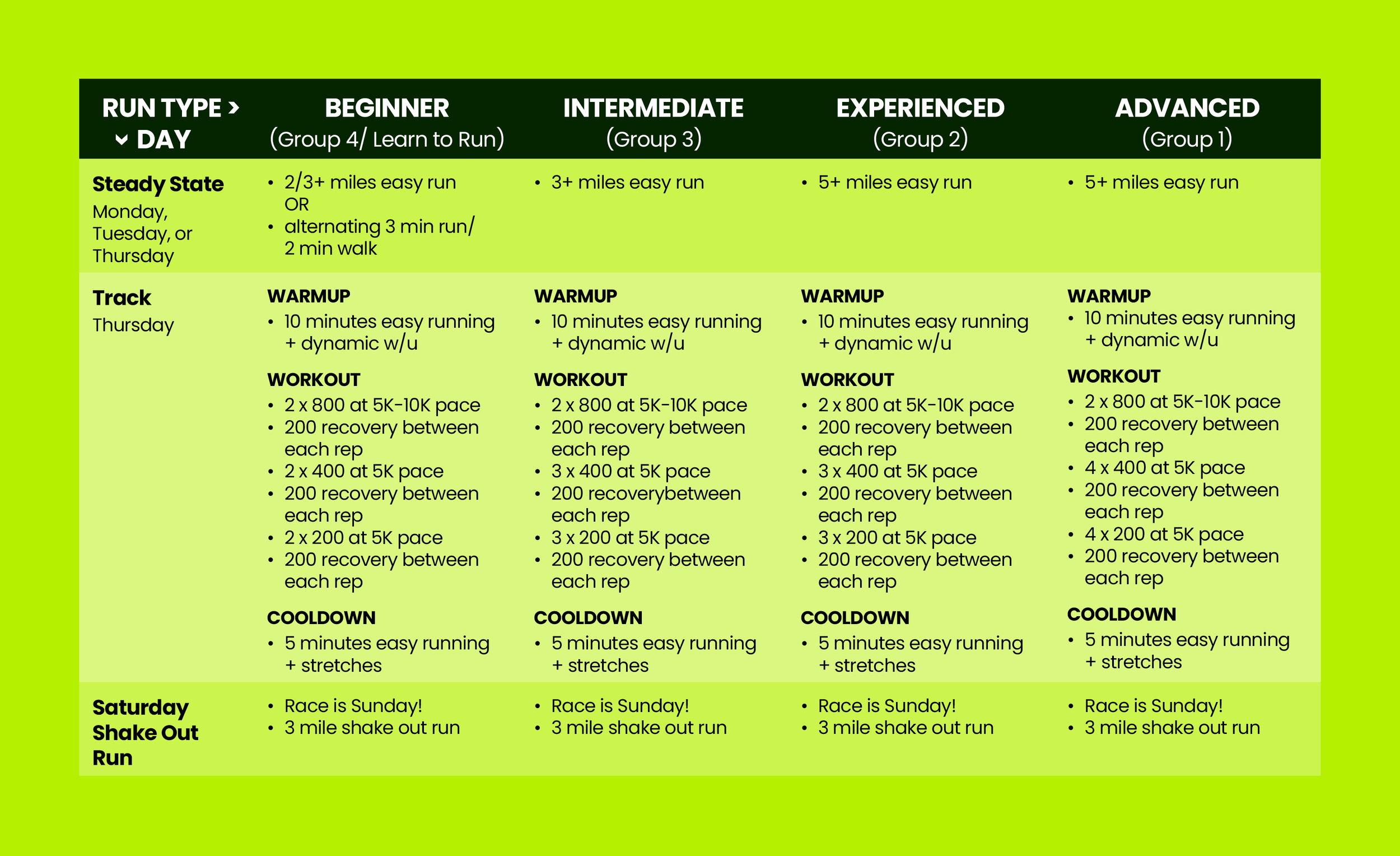 Saturday Long Run: This week it's a shakeout, that means just move at an easy pace that makes sense for you today, get those legs loose for the race SUNDAY!
